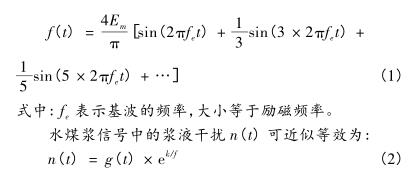 式中:g(t) 表示漿液信號的幅值,特點為隨機跳變的信號,波動比較大,f表示頻率。漿液噪聲在低頻段幅值比較大,隨著頻率的增加,漿液噪聲的幅值在減小。那么,傳感器輸出的信號s(t) 形式為: